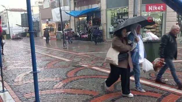 Edirne’de hava sıcaklığı 11 dereceye kadar düşerken, sağanak nedeniyle kent merkezindeki bazı cadde ve sokaklarda su birikintileri oluştu. Yağışın gece saatlerine kadar aralıklarla devam etmesi bekleniyor. Sürücüler ve yayalar, yağmur nedeniyle zor anlar yaşadı.