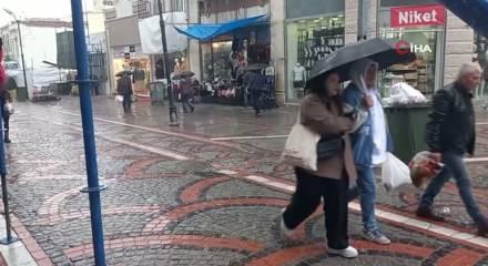 Kırklareli’nde de dün başlayan sağanak, bugün etkisini artırdı. Kentte hava sıcaklığı 12 derece olarak ölçüldü. Yağışa hazırlıksız yakalanan vatandaşlar, iş yerlerinin girişlerinde yağmurun durmasını beklerken, bazıları şemsiye ile korunmaya çalıştı. Cadde ve sokaklarda yer yer su birikintileri oluştu. Meteoroloji, yağışların gün boyu aralıklarla süreceği uyarısında bulundu.