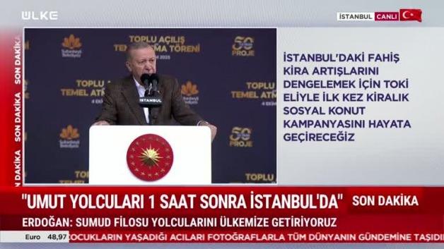 Cumhurbaşkanı Erdoğan, "İstanbul'daki fahiş kiraları engellemek için ilk kez kiralık sosyal konut inşa edeceğiz. Artık devlet olarak vatandaşımıza biz kiralık konut vereceğiz. Detayları önümüzdeki günlerde paylaşacağız" dedi.