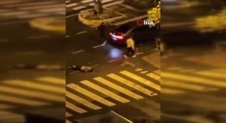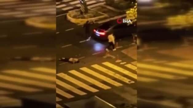 İstanbul Beylikdüzü'nde bir vatandaş ile iki şüpheli arasında henüz bilinmeyen bir nedenle kavga çıktı. İki şahıs, döverek bayılttıkları şahsı yerde yatarken yumruklamaya devam etti. O anlar kameraya yansıdı.