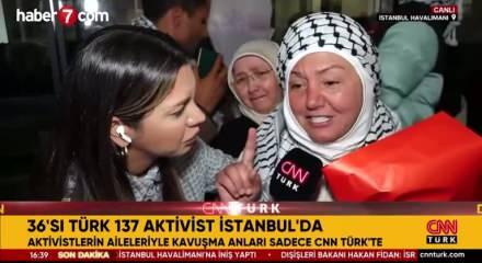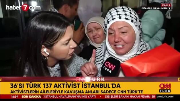 CNN TÜRK'e konuşan aktivistler "Ben Gvir geldi rezil oldu. O bize terörist dedi, biz de asıl teröristin Gazze'de iki yıldır bu soykırımı yapanların onlar olduğunu söyledik." dedi.