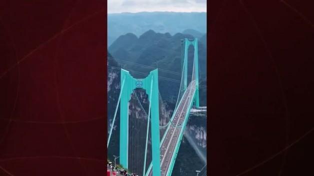 Çin, 4 yıldan kısa sürede tamamladığı Huajiang Büyük Kanyon Köprüsü’nü açtı. Köprü, 800 metre yükseklikteki restoranı, cam yürüyüş yolu, asansör, şelale ve bungee jumping alanıyla aynı zamanda bir tema parkı işlevi görüyor.