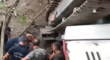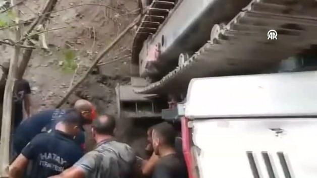 Hatay'ın Dörtyol ilçesinde özel bir firma tarafından yürütülen ağaç kesim çalışmaları için yol açan firma çalışanı Yusuf Yalman'ın (28) kullandığı kepçe, zemindeki toprağın kayması sonucu uçuruma yuvarlandı.