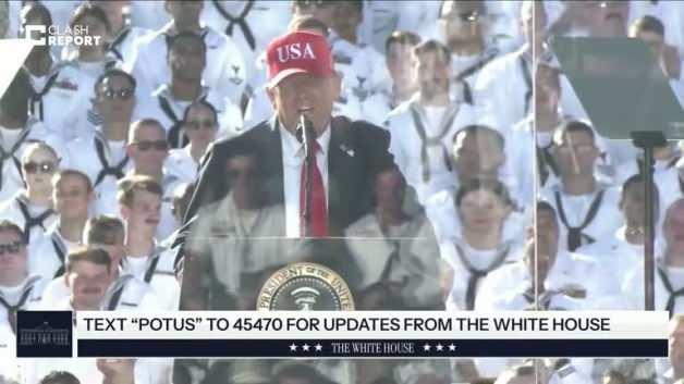 Trump, "Denizaltılar konusunda diğer ülkelerden 25 yıl öndeyiz, kimse bize yaklaşamaz bile." diye ekledi ve donanma üyelerine, "gerek duyulmadığı sürece kimseyi savaşa göndermekten yana olmadıklarını" söyledi.