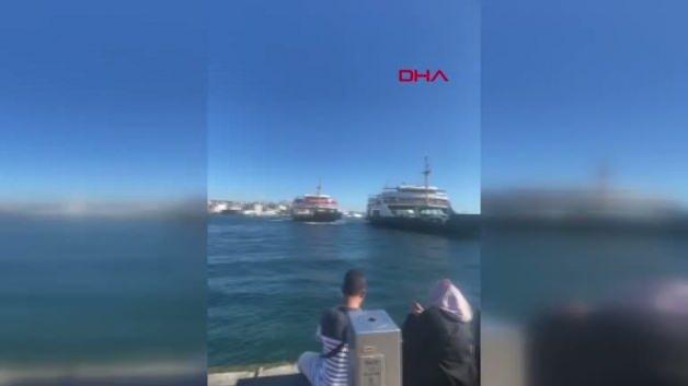 Harem-Sirkeci hattında sefer yapan arabalı vapur, önce Sirkeci İskelesi'nde demirli bir vapura, ardından iskeleye çarparak durdu.