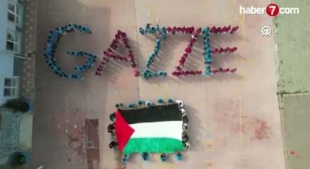 Öğrenciler “Özgür Filistin” ve “Gazze” koreografisi oluşturarak Filistin'deki insanlık dramına dikkat çekti.