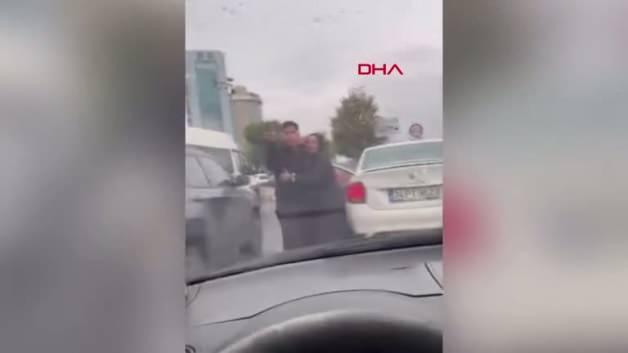 Kadıköy'de trafikte yolcu indiren sürücüyle başka bir otomobil sürücüsü arasında tartışma çıktı. Aracından inen sürücü arkadaki otomobil sürücüsüne bağırıp küfür etti. O anlar cep telefonu kamerasıyla kaydedildi.