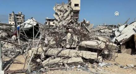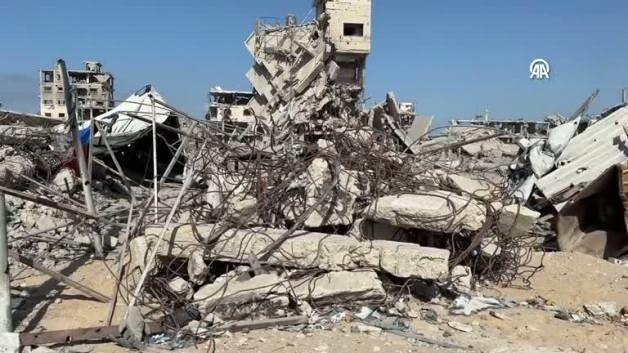 Güneydeki Han Yunus ve kuzeydeki Gazze'nin moloz yığınına döndüğü görüldü. Gazze Şeridi'nin güneyindeki Han Yunus'un yüzde 85'i İsrail saldırıları sonucu yıkıldı.