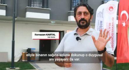 Görüntülerde yer alan hak sahibi Yalçın Özer, eski evlerinin depreme dayanıksız olduğunu belirterek, duygularını, "Yeni binalarımızdan çok mutluyuz. Biz iyi bir örnek olduk. Komşularımıza, misafirlerimize evlerimizi göstererek, 'TOKİ yaparsa böyle yapar' diyeceğiz." sözleriyle dile getirdi.