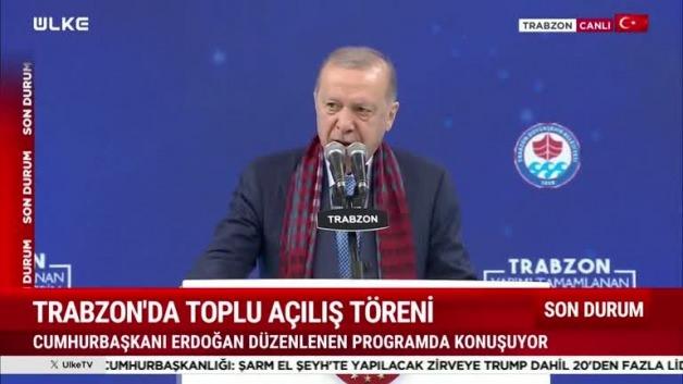 Cumhurbaşkanı Recep Tayyip Erdoğan, Trabzon'da yapımı tamamlanan projelerin açılışında konuştu.