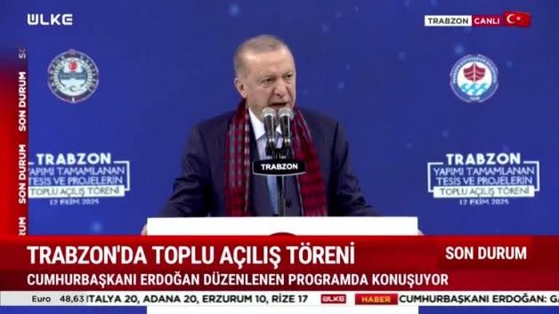 Cumhurbaşkanı Recep Tayyip Erdoğan, Trabzon'da yapımı tamamlanan projelerin açılışında konuştu.