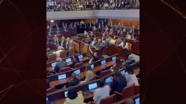 Başkan Trump, Knesset'ta konuşluğu sırada yapılan milletvekilleri Ayman Odeh ve Ofer Cassif, "soykırım" ve "Filistin'i tanı" yazılı pankartlar taşıyarak Trump'ı protesto etti.