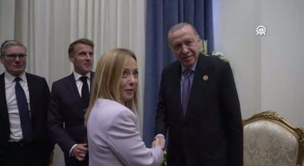 Zirve önce Mısır'a gelen liderlerle görüşen Cumhurbaşkanı Erdoğan, İtalya Başbakanı Giorgia Meloni ile de ayaküstü bir sohbet gerçekleştirdi.