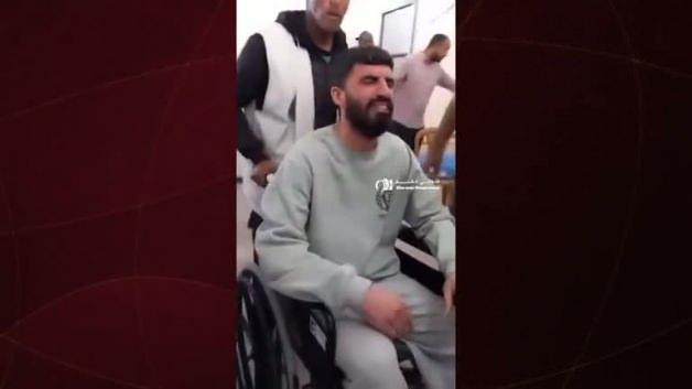 İsrail hapishanesinden çıktıktan sonra eşi ve çocuklarının tamamı şehit olduğunu öğrenen Gazzeli bir esirin gözyaşları yürekleri burktu.