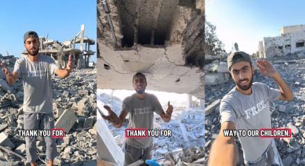 Gazzeli Mervan Aboabda "Gazze gerçeği söylüyor. "Ateşkes için teşekkürler"... ama bombaları, vetoları ve sessizliği asla unutmayacağız. Soykırımı durdurun. İnsanlık için ayağa kalk" notuyla sosyal medyadan paylaştığı videoda şu ifadeleri kullandı: