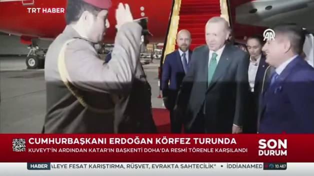 "TRK" uçağıyla Uluslararası Hamad Havalimanı'na gelen Cumhurbaşkanı Erdoğan, resmi törenle karşılandı.