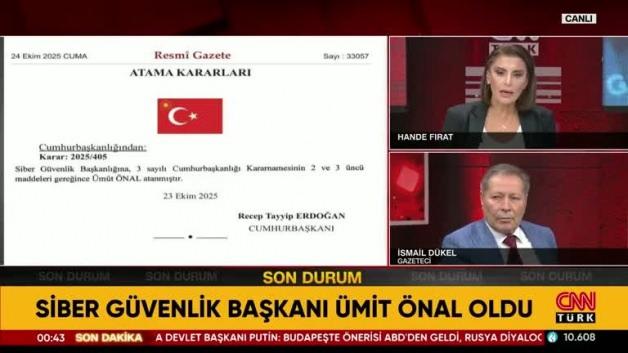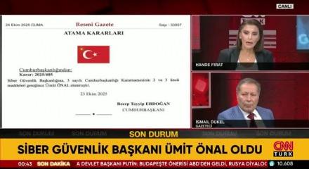 Bazı kurum ile kuruluşlara ilişkin atama kararları, Resmi Gazete'nin bugünkü sayısında yayımlandı. Siber Güvenlik Başkanlığı'na Ümit Önal atandı.