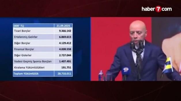 Öte yandan Fenerbahçe'nin borcu açıklandı. Sarı-lacivertlilerin borcunun Eylül 2025 itibarıyla 28.7 milyar TL (588.842.321,96 Euro) olduğu bildirildi.