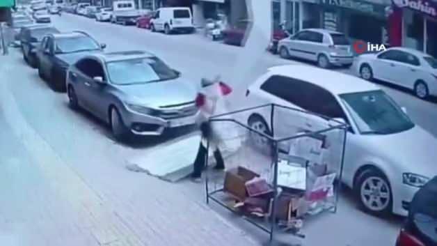 Bursa’da sokakta yürüyen kadının üzerine çatı düştü. Saniyelik hamleyle kurtulan kadının o anları güvenlik kamerasına yansıdı.