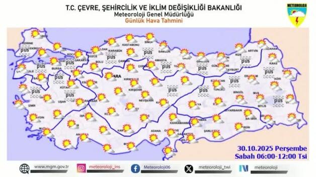 Meteoroloji Genel Müdürlüğü, il il hava durumunu açıkladı. Hava sıcaklıklarının; yurdun güney, iç ve batı kesimlerinde mevsim normallerinin 3 ila 5 derece üzerinde seyredeceği tahmin ediliyor.