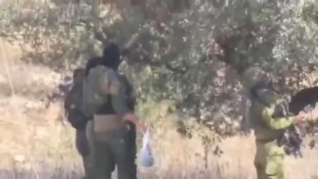 İsrail işgal güçleri ise Filistinli çiftçilerin emeğine göz dikerek zeytin ağaçlarında toplanmamış zeytinleri çaldı. İsrail askerlerinin hırsızlığı cep telefonu kamerasına da yansıdı.