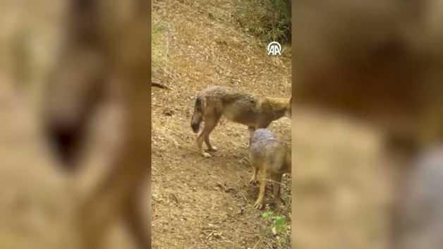Bölgede kayıt alan bir fotokapanla 2 çakal görüntülendi. Görüntülerde ormanda yürüyen çakallar yer aldı.