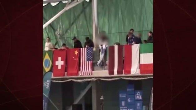 İspanya'nın Palma kentinde düzenlenen Eskrim Dünya Şampiyonası, Filistin'e destek eylemine sahne oldu. Salonda asılı İsrail bayrağını indiren bir izleyici, yerine Filistin bayrağını astı.