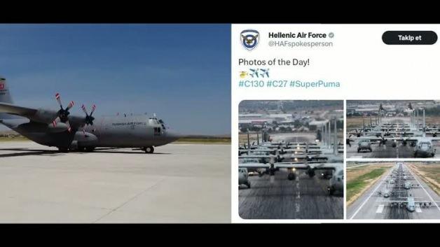 Yunanistan hava Kuvvetleri paylaşımında C130 uçaklarının yer aldığı fotoğrafı “Günün Fotoğrafı” notuyla yayınladı.