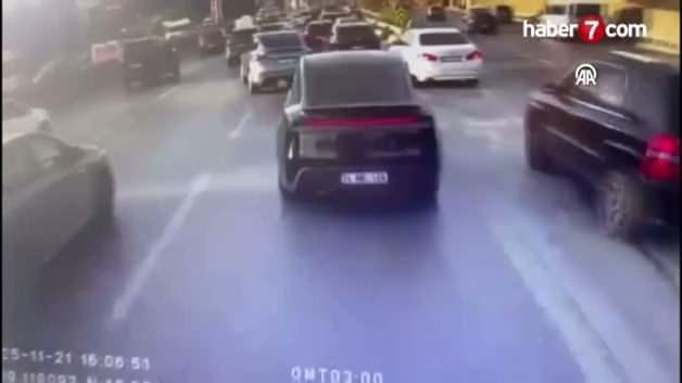 Öte yandan kaza aynı yolda seyir halinde olan başka bir aracın kamerasınca kaydedildi.
