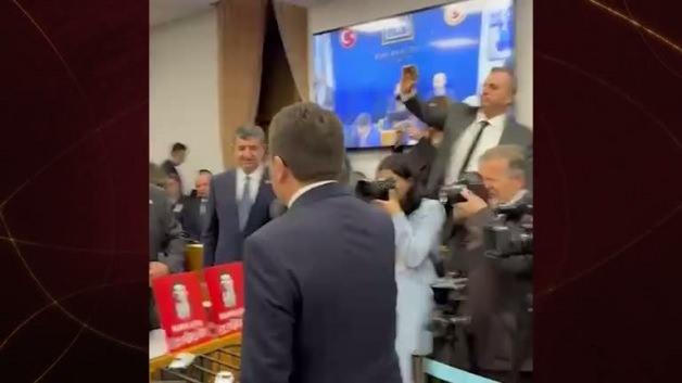 Adalet Bakanlığının 2026 yılı bütçesinin görüşüldüğü TBMM Plan Bütçe Komisyonu görüşmeleri öncesinde CHP Malatya Milletvekili Veli Ağbaba, partisinden tutuklu belediye başkanlarının fotoğraflarından oluşan dövizin içerisinde yer aldığı kafesi Adalet Bakanı Yılmaz Tunç'a gösterdi.