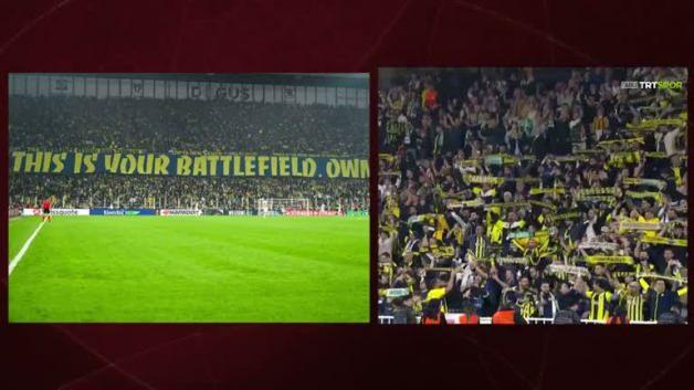 Sarı-lacivertli taraftarlar, Süper Lig'in 14. haftasında takımlarının pazartesi günü Kadıköy'de Galatasaray ile oynayacağı derbi mücadelesine atıf yaparak üzerinde "This is your battlefield. Own it. 01.12.2025" (Burası senin savaş alanın. Sahip ol) yazılı bir pankart açtı.