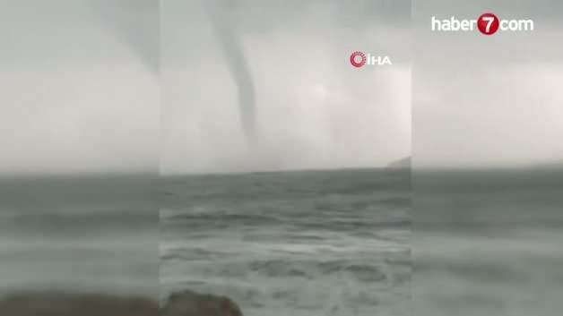 Muğla’nın Marmaris ilçesinde yağışla birlikte denizde çıkan dev hortum böyle görüntülendi.