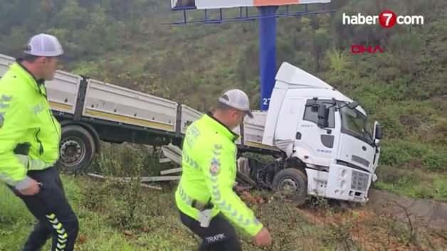 Kaza, saat 13.45 sıralarında Kuzey Marmara Otoyolu Ümraniye istikametinde meydana geldi. Edinilen bilgiye göre, O.Ö. idaresindeki TIR'la ilerlerken yağmur nedeniyle kayganlaşan yolda direksiyon hakimiyetini kaybederek yoldan çıktı ve şarampole yuvarlandı. İhbar üzerine olay yerine polis, itfaiye ve sağlık ekipleri sevk edildi. Şarampole düşen TIR şoförü O.Ö., sağlık ekipleri tarafından yapılan ilk müdahalenin ardından ambulansla hastaneye kaldırıldı. Yaralının hayati tehlikesinin bulunmadığı öğrenildi.