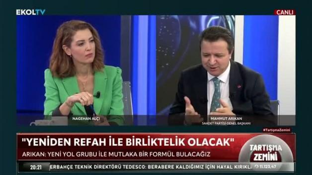 Saadet Partisi Genel Başkanı Mahmut Arıkan, Ekol TV’de Nagehan Alçı’nın sunduğu Tartışma Zemini programında siyaset gündemine ilişkin dikkat çeken açıklamalarda bulundu. Arıkan, ittifak ihtimallerine kapıyı kapatmadığını belirterek, “Cumhur İttifakı ile masaya otururum, herkesle otururum. Burada hiçbir beis yok” dedi.