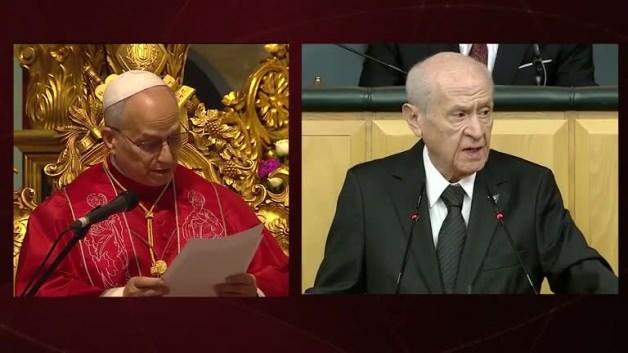 MHP Genel Başkanı Bahçeli, Papa 14. Leo'nun Türkiye ziyaretinde katıldığı ayinler hakkında ilk kez konuştu. Bu programlara eleştiri getiren Bahçeli, Ruhban Okulu'nun Eylül 2026'da açılacağını söyleyen ABD Büyükelçisi'ne de tepki gösterdi.