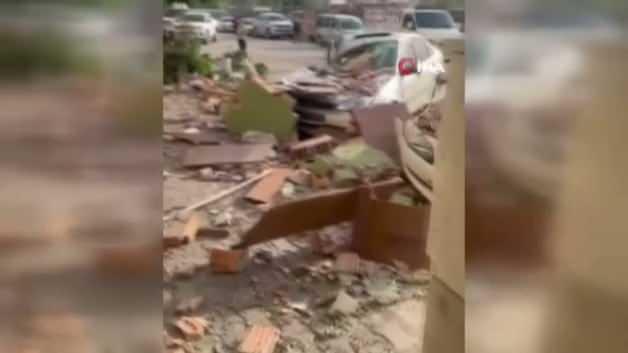 Hatay'ın İskenderun ilçesinde etkili olan şiddetli fırtına, bir apartmanın dam duvarının yıkılmasına neden oldu. Duvarın altında kalan üç otomobil ve bir motosiklet olayda hasar gördü.