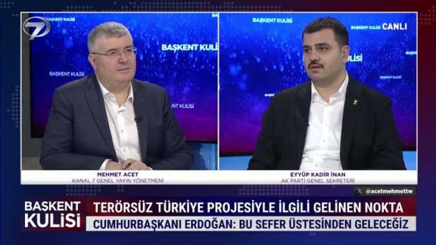 Kanal 7 Genel Yayın Yönetmeni ve Haber 7 Yazarı Mehmet Acet, bu hafta Başkent Kulisi programında AK Parti Genel Sekreteri ve İzmir Milletvekili Eyyüp Kadir İnan katıldı.