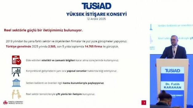 Türkiye Cumhuriyet Merkez Bankası (TCMB) Başkanı Fatih Karahan, TÜSİAD Yüksek İstişare Konseyi Toplantısı'nda önemli açıklamalarda bulundu. Karahan, enflasyon ve fiyat istikrarı vurgusu yaptı.
