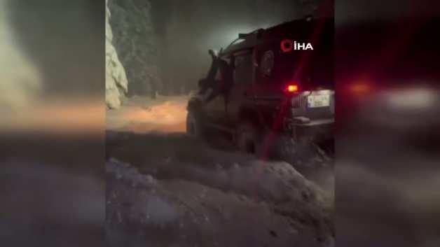 Kar yağışını fırsat bilen offroad tutkunları, arazi araçlarıyla bölgeye gelerek karda sürüş yaptı ve kamp kurdu.