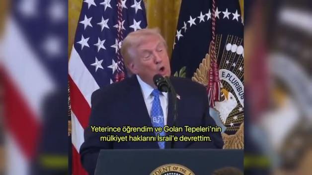 Trump, Beyaz Saray’daki Hanuka etkinliğinde, “Golan Tepeleri üzerindeki hakları İsrail’e verdim” dedi.