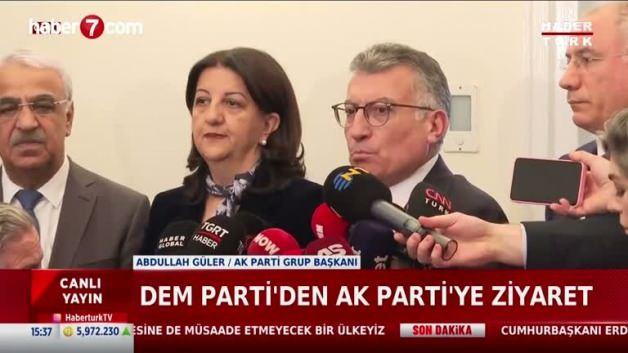 AK Parti Grup Başkanı Abdullah Güler, görüşme sonrası yaptığı açıklamalarda, 5 Ağustos itibarıyla çalışmalarına başlayan Milli Dayanışma Kardeşlik ve Demokrasi Komisyonu’nun geldiği aşamaya dikkat çekti. Güler, "Siyasi partiler bugüne kadar yapılan çalışmalara yönelik raporlarını sundu. En son biz de Meclis Başkanlığımıza dün arz etmiş olduk. Bu kapsamda da detaylı değerlendirmeler yaptık. Karşılıklı görüş alışverişinde bulunduk. Daha sonraki dönemlerde detaylı açıklamalar yaparız. Ben Sayın Başkanımıza, Mithat Hocamıza, Özgür Bey'e çok teşekkür ediyorum." ifadelerini kullandı.