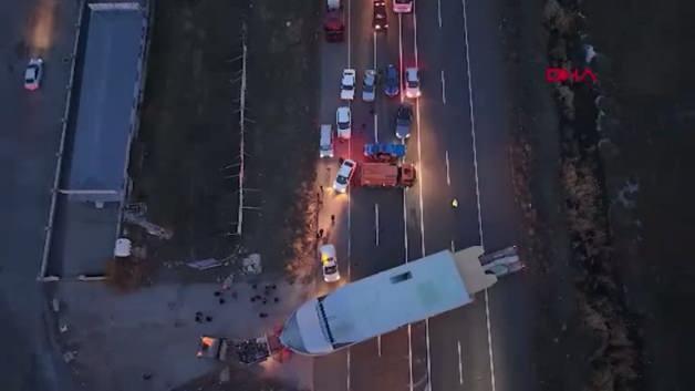 Yaklaşık 1,5 saat süren çalışmanın ardından iş makinesi yardımıyla TIR çekilerek önce otomobil ve midibüslere yol verildi. TIR'ın tamamın yoldan çıkarılmasıyla kara yolu yeniden ulaşıma açıldı.