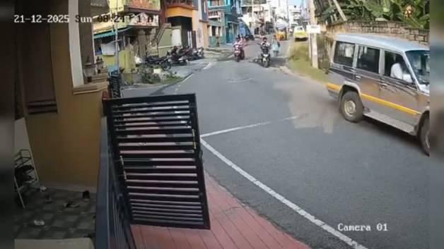Hindistan'da yollardaki ihmal az kalsın can alıyordu.Yerel toplu taşıma aracı yoldaki kazılı alana düşünce sürücü direksiyon hakimiyetini kaybedince yol kenarındaki kadına çarptı.