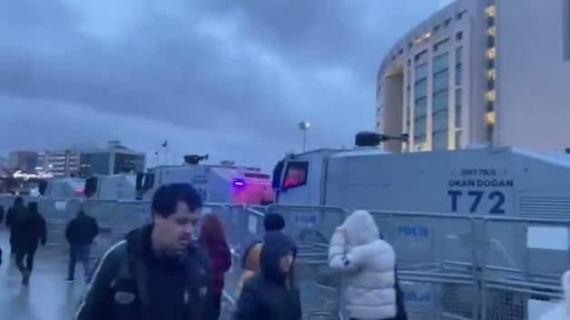 TOMA'lar bölgeye getirilirken; polisler kalkanlarıyla birlikte Çağlayan Adliyesi'ne geldi.