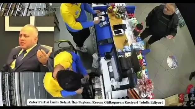 İzmir'de Zafer Partisi Selçuk İlçe Başkanı Kerem Gülkoparan, bir benzin istasyonunun market bölümünde çalışan kasiyeri tehdit ettiği anlar, güvenlik kameraları tarafından anbean kaydedildi.