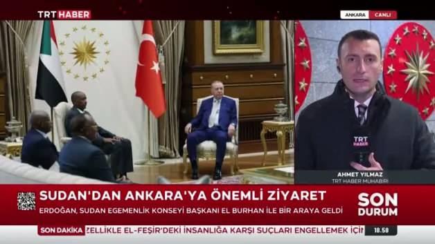 Cumhurbaşkanı Erdoğan'ın davetine icabetle Türkiye'ye resmi ziyarette bulunan Burhan ile Erdoğan arasında baş başa yapılan görüşmenin ardından çalışma yemeğine geçildi.