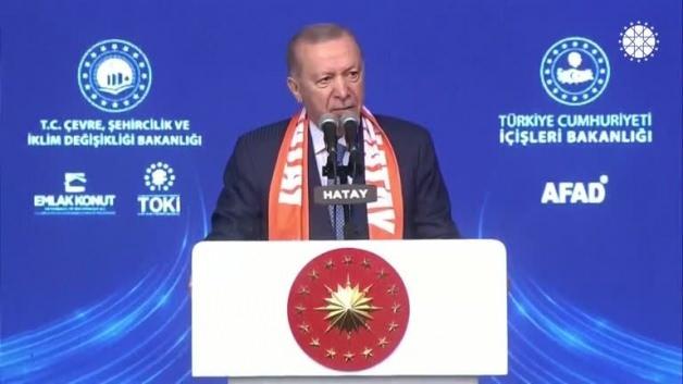 Cumhurbaşkanı Recep Tayyip Erdoğan, Hatay'da “455 Bininci Afet Konutu Kura Çekimi, Anahtar Teslimi ve Yapımı Tamamlanan Yatırımların Toplu Açılış Töreni”nde konuştu.