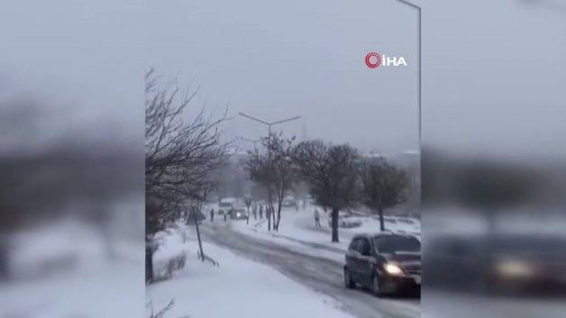 Elazığ’da dün başlayan ve bazı kesimlerde halen devam eden kar yağışı, hayatı olumsuz etkilemeye devam ediyor. Palu ilçesinde yolcu otobüsü, yağan kardan dolayı yolda kaldı. Yolda kalan otobüsü gören vatandaşlar yardıma koşarak otobüsü arkadan iteledi. Mahsur kalan otobüs vatandaşların da yardımıyla mahsur kaldığı yerden kurtarıldı.