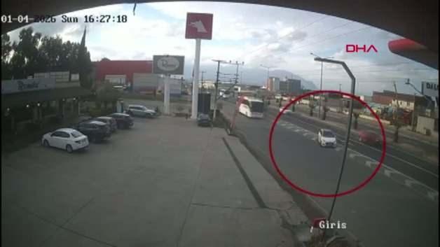 Manisa’nın Turgutlu ilçesinde yolcu otobüsünün çarptığı otomobildeki 1'i çocuk, 3 kişi yaralandı. Kaza bir iş yerinin güvenlik kamerasına yansıdı.