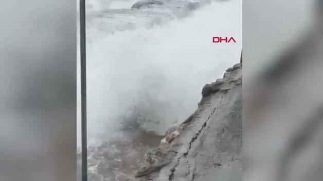 Kadıköy Caddebostan Sahili'nde lodos nedeniyle oluşan dev dalgalar, denize girmek isteyen 3 kişiyi kayalıklara savurdu. Yaralıların bacaklarında kırıklar oluştuğu öğrenildi.